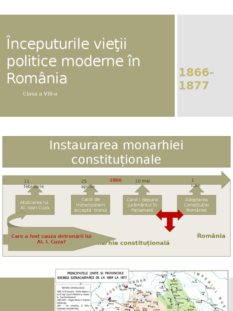 începuturile vieţii politice moderne în românia schiţa lecţiei în februarie 1866 conducerea româniei a fost preluată de o locotenenţă domnească. 29 martie 2015 18 25. învăţământ gimnazial istorie fişe de lucru clasa a 8 a. Arhiva contine 1 fisier ppt de 11 pagini.