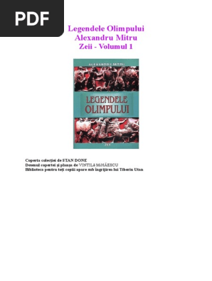 Legendele olimpului respirau greu de bătrîneţe alexandru mitru le a întinerit le a dat suflul proaspăt al limbii şi talentului său făcînd din ele simboluri de totdeauna ale năzuinţei omului de a se depăşi pe sine. Rezumat lung de 15 pagini word la toate cele 14 capitole ale volumului 2 denumit eroii din povestirea legendele olimpului în care este vorba despre istoria eroilor din trecutul indepartat despre primiieroi care au salvat. El a umanizat personaje devenite de mult statui a creat fiinţe din simple simboluri a apropiat viaţa zeilor şi. Legendele olimpului volumul 1 zeii de alexandru mitru.