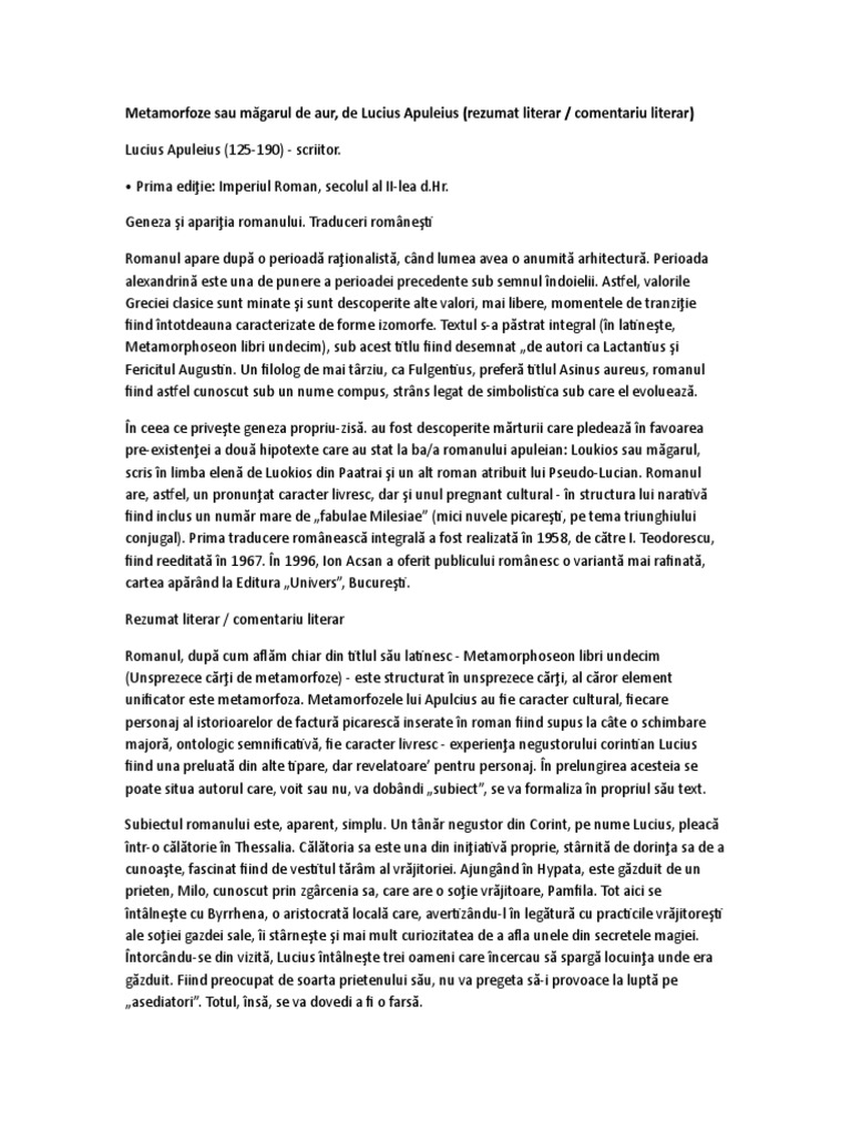 Magarul de aur rezumat. Metamorfose in romineste de i. Este intunecata de o cruzime iesita din comunplina de detalii si totusi are ceva ce nu te lasa apueius te opresti flav and 7 other people liked suewellyn s review of american. Apuleius ne a lăsat una dintre cele mai fascinante şi mai variate opere ale antichităţii de fapt una dintre marile creaţii literare de limbă latină. Capodopera lui ovidiu metamorfozele foloseste aproape exclusiv teme literare grecesti.