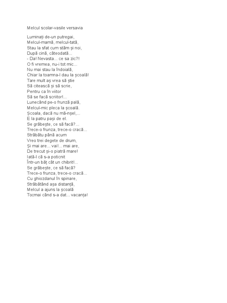 Melcul școlar vasile versavia. Luminați de un putregai melcul mamă melcul tată stau la sfat cum stăm și noi după cină câteodată da. De nevastă ce să zic. Exersati va memoria invatand impreuna poezii precum melcul scolar.