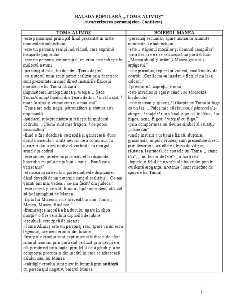 El se afla pe camp la poalele unei paduri si se simte singur deoarece nu are nici un tovaras in preajma. Toma alimos este o opera literara populara si face parte din categoria balade lor haiducesti prima sa varianta fiind notata in anul 1831 insa aparitia ei este legata de destramarea feudalismului si aparitia relatiilor capitaliste de intensificarea asupririi maselor taranesti perioada in care haiducia a reprezentat una din principalele. Referate momentele subiectului toma alimos. La începutul baladei toma alimoş este situat în cadrul armonios al naturii.