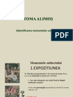 Desi nu se asteapta ca la inchinarea sa adresata codrului armelor si murgului acestia sa i raspunda toti cei carora le. Toma alimos era un haiduc vestit din tara de jos. Toma alimos momentele subiectului. Toma doreste sa discute la o plosca de bautura dar manea cu stanga ia plosca si cu dre.