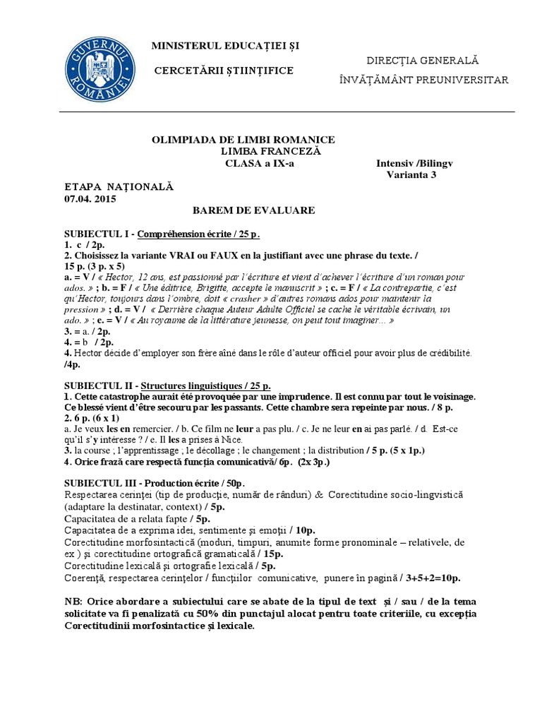 Subiect n1 2017 olimpiada. Programul olimpiadei nationale de lingvistica. Pagina cuprinde informatii despre olimpiada de lingvistica din romania in vederea popularizarii acesteia in randul elevilor si al profesorilor. Autentifică te pe site pentru a putea lăsa un comentariu.