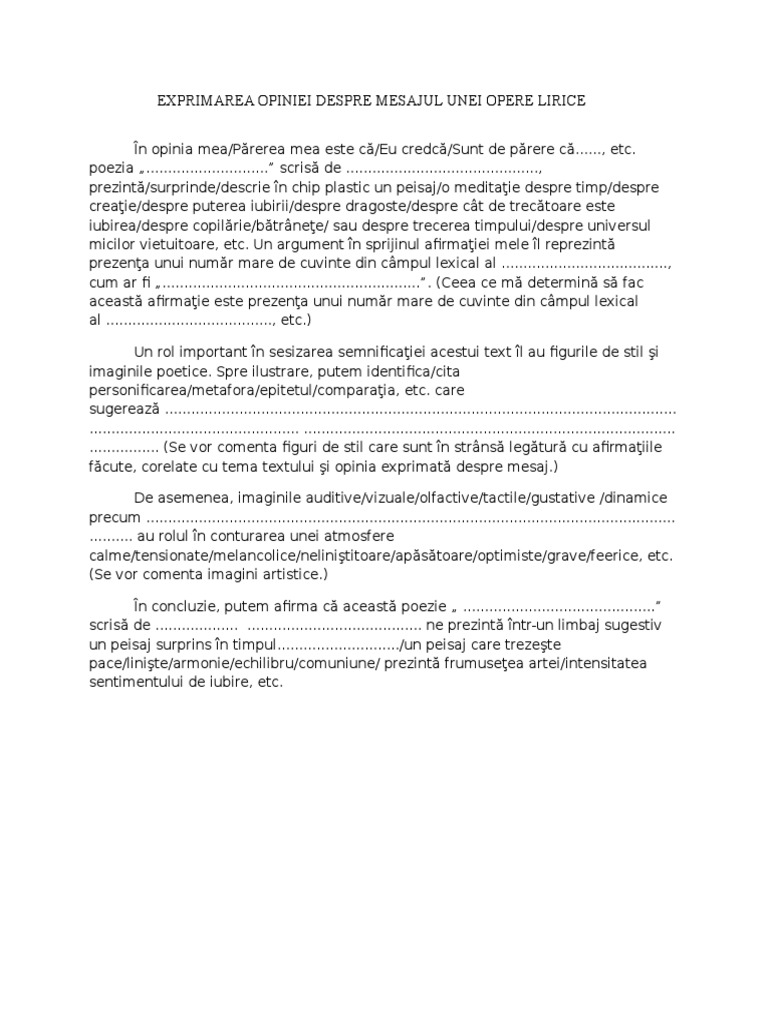 Opinia despre mesaj semnificaiile unui text liric schem pe ciorn 1. Cam asta e ideea pe care o formulezi in introducere. Tema și motivele textului liric. Analiza textului la diverse niveluri.