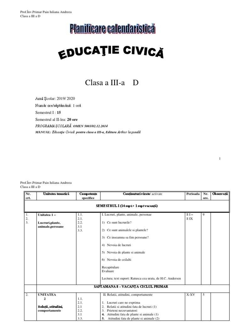 Planificare anuala integrată clasa i 2019 2020. Planificare calendaristica integrata pentru clasa a iii a realizata dupa manualele. Planificare calendaristica cls a iii a editura arthur. Sunteți un exemplu pentru noi.