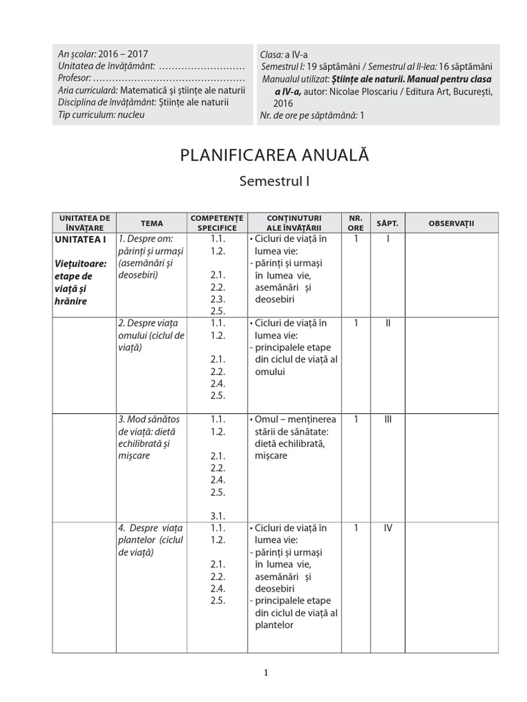 Planificare științe ale naturii 2018 2019. științe ale naturii manual pentru clasa a iv a. Planificare calendaristica stiinte ale naturii clasa a iv a anul școlar 2016 2017. Proiectare stiinte ale naturii clasa 4 varianta radu radu sem1 aramis descarca in format pdf.