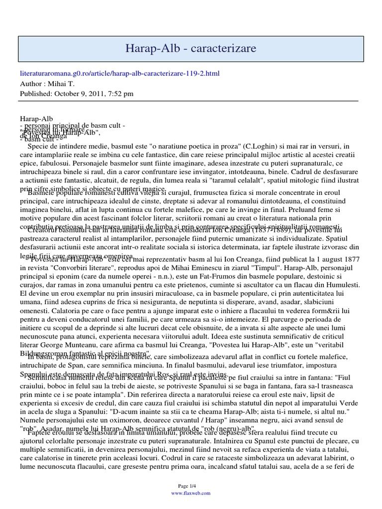 Acesta este considerat a fi unul dintre clasicii literaturii române mai ales datorită operei sale autobiografice amintiri din copilărie. Caracterizare personaj povestea lui harap alb de ion creanga. Eseul are în prim plan personajul principal al basmului harap alb.