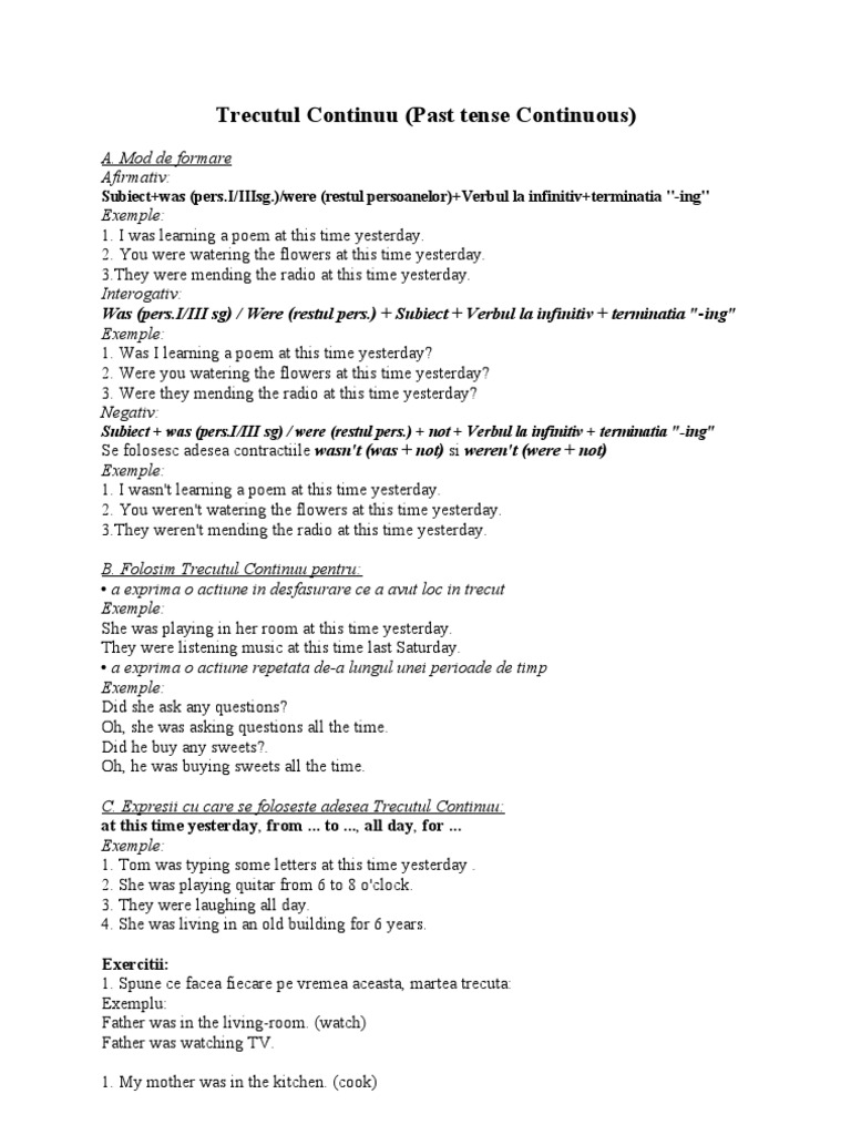 Prezentul Continuu In Engleza Exercitii
