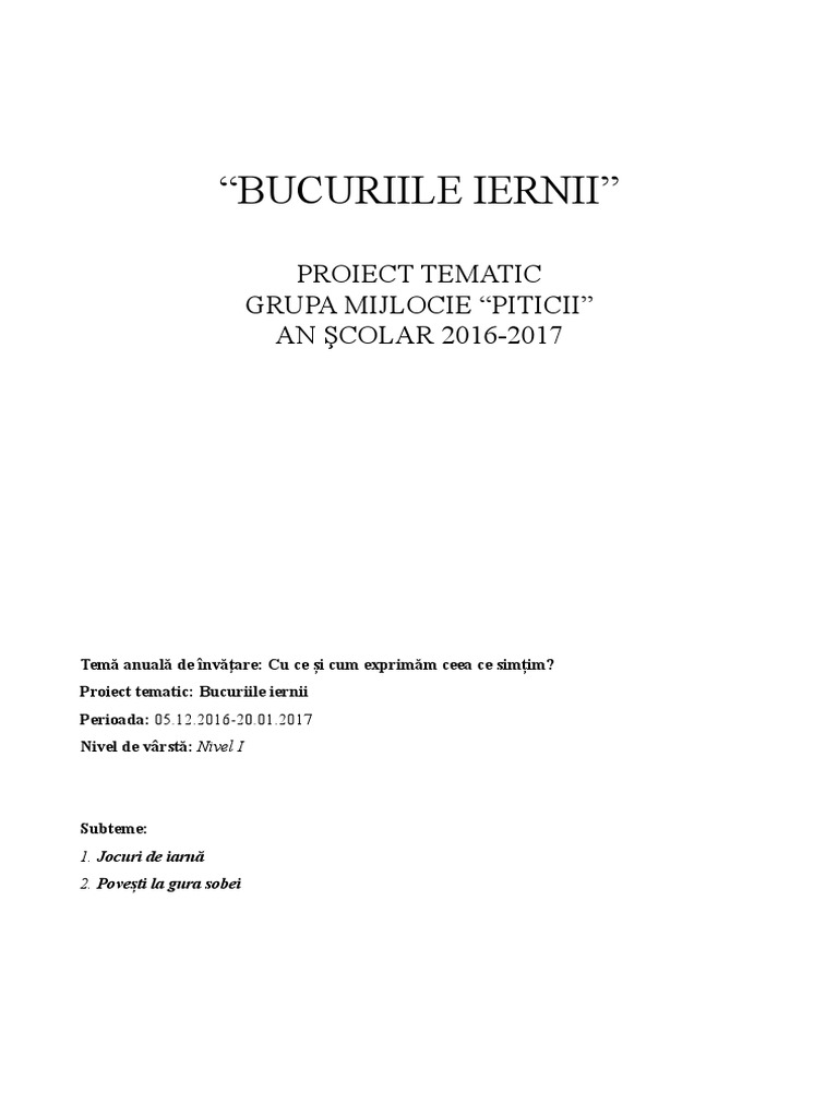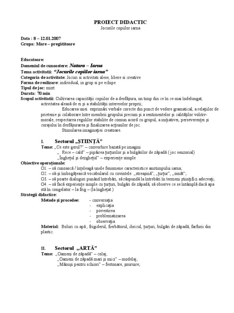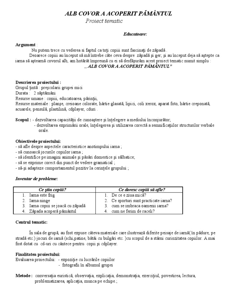 Proiect de activitate integrata grupa. Proiect didactic pentru activitate integrata iarna bucuria copiilor grupa mare proiect didactic pentru activitate integrata iarna bucuria copiilor curte fratila felicia gadinita p p. Care se numește chipul iernii. Proiect tematic bucuriile iernii.