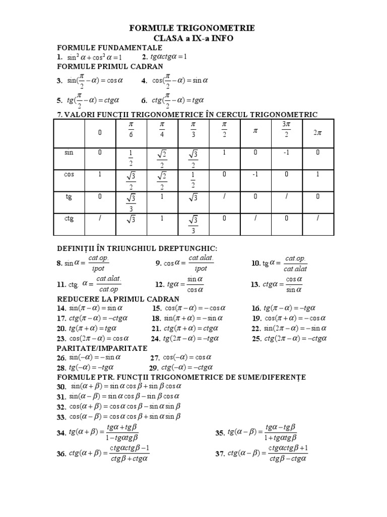 în plus pentru fiecare caz vei găsi la sfârșitul paginii câte un exemplu în care se vor aplica formulele de reducere la primul cadran introduse.