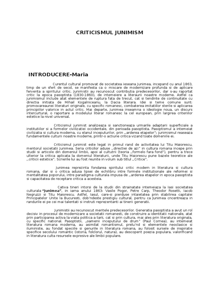 Studiu de caz criticismul junimist. Pular para a página. Referat clopotel ro 1 repere ale cazului dupa unirea din 1859 paradigma culturala realizata de pasoptisti este pusa in discutie si supusa unui sever examen critic de o noua generatie de intelectuali care se impune ca un grup de mare solidaritate ideologica si culturala si timp de un sfert de secol constituie elita culturii romane. Originea familiei și legătura cu lumea balcanică. Heorghe roxana g herghina alina io n mariana.