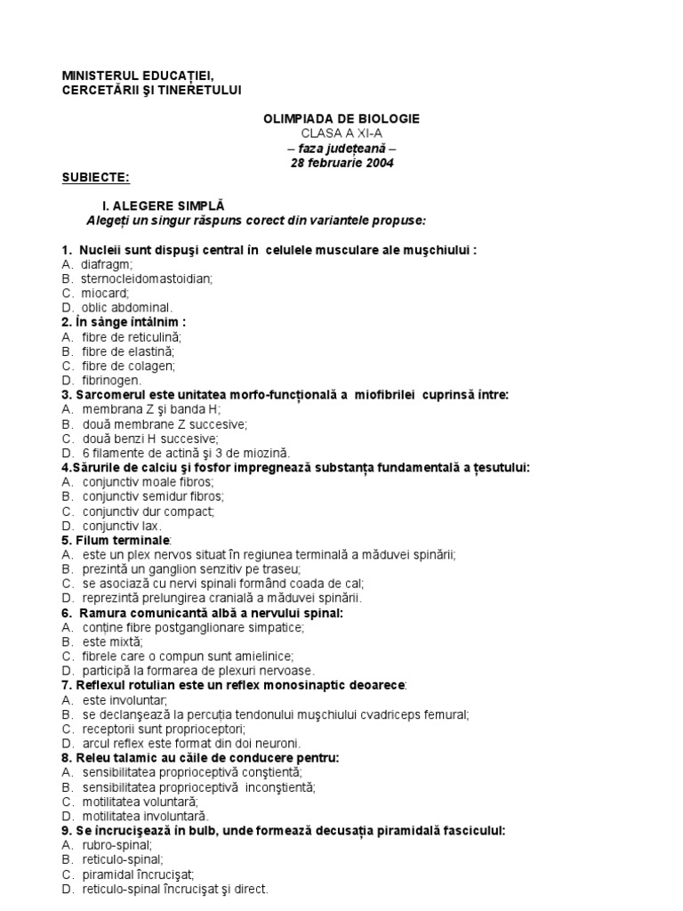 Subiecte Olimpiada De Biologie