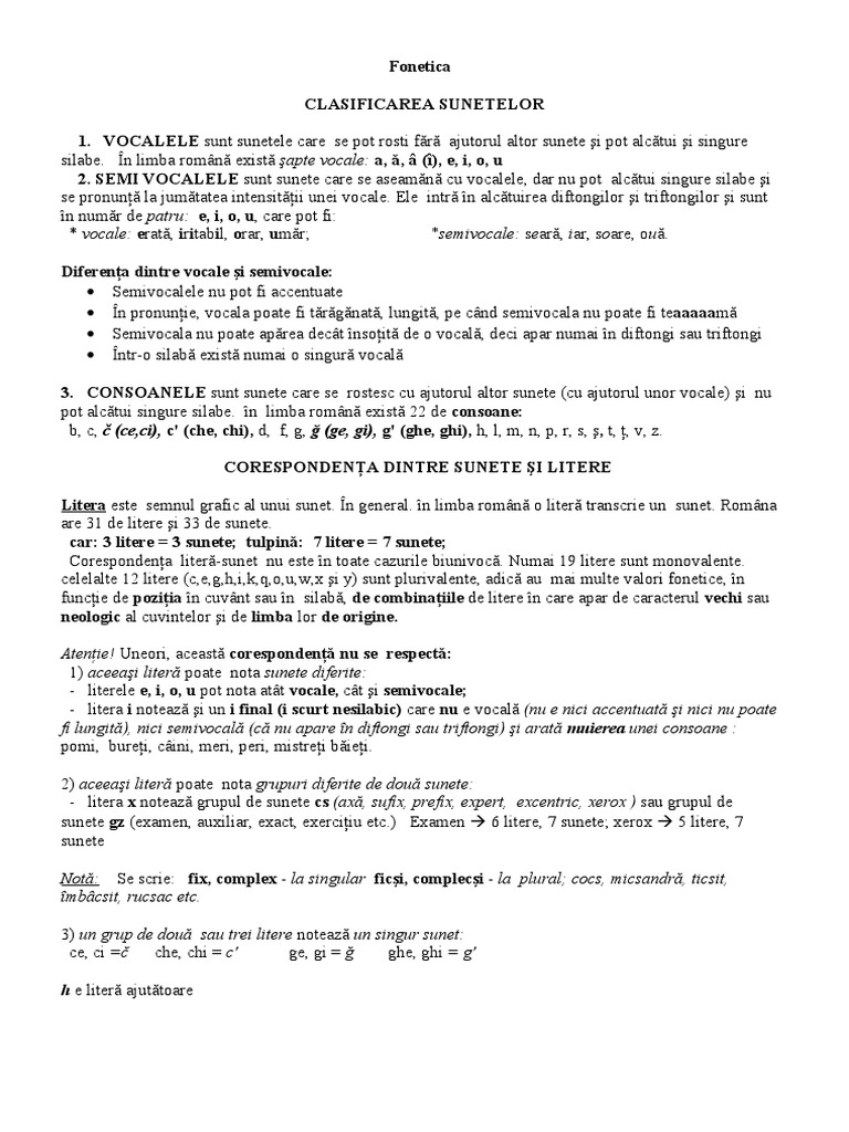 Adica care e treaba cu e si i si consoane si vocale. Litere și sunete 2. Grupul ci mai este insoti de o litera deci are 1 sunet in total 6 sunete tot. Vocabular şi fonetică teorie si exercitii cu raspunsuri.