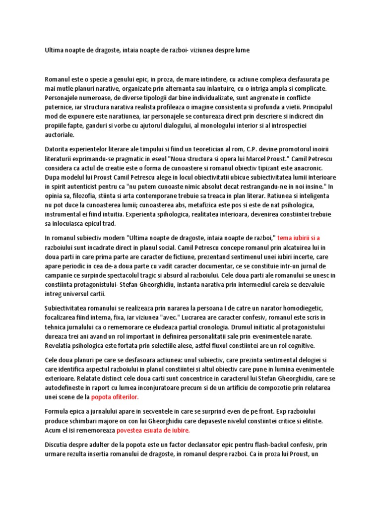 Ultima noapte de dragoste intaia noapte de razboi eseu bac. Cele două planuri sunt unificate de prezența unei singure conștiințe care se autodefinește în raport cu lumea înconjurătoare. Read ultima noapte de dragoste întâia noapte de război camil petrescu 1930 from the story eseuri bac by ade adda with 16 934 reads. Opera literară ultima noapte de dragoste întâia noapte de război de camil petrescu a apărut în perioada interbelică în anul 1930. Fie că vei avea de realizat un comentariu al romanului ultima noapte de dragoste întâia noapte de război fie că cerința va fi redactarea unui material despre particularități de construcție a unui personaj eseu această pagină îți va fi de mare folos pentru că sintetizează cele mai importante detalii pe care trebuie să le conțină un comentariu.