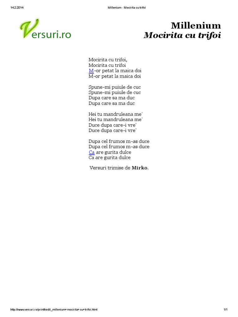 Versuri Mocirita Cu Trifoi