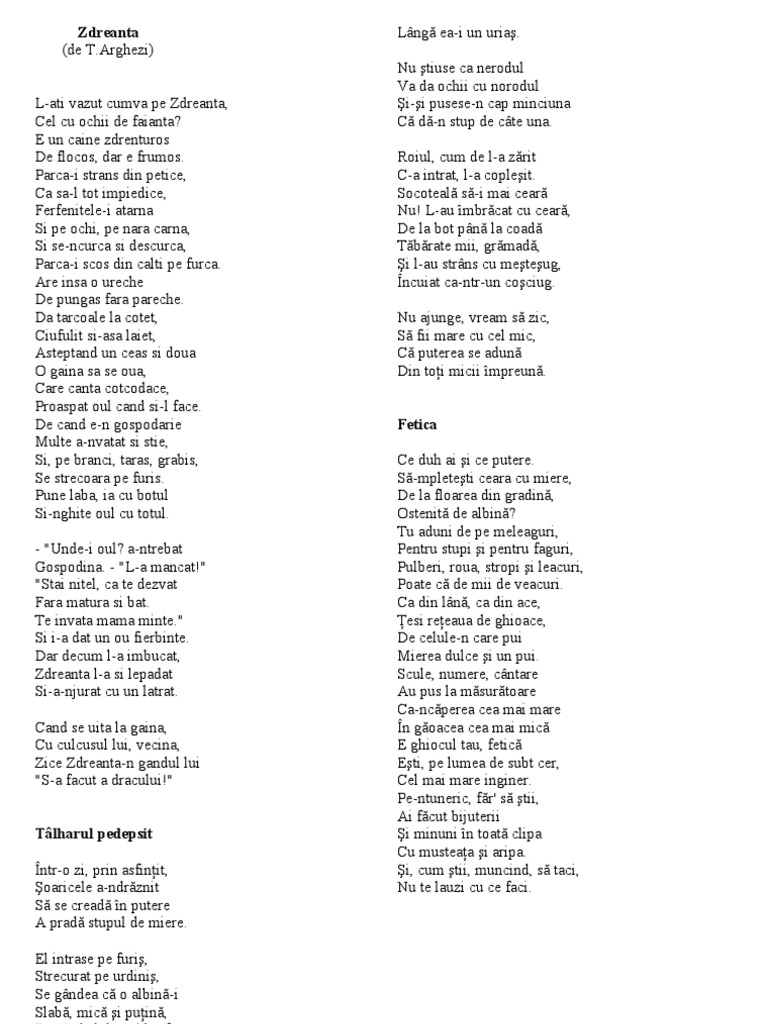 Zdreanta de tudor arghezi tudor arghezi a scris poezii si proza. De când e n gospodărie multe a nvăţat şi ştie şi pe brânci târâş grăbiş se strecoară pe furiş. Enigma otiliei de george calinescu capitolul i primul capitol prezinta sosirea tanarului felix sima in casa tutorelui sau costache giurgiuveanu unchiul sau. Tudor arghezi pseudonimul lui ion nae theodorescu n.
